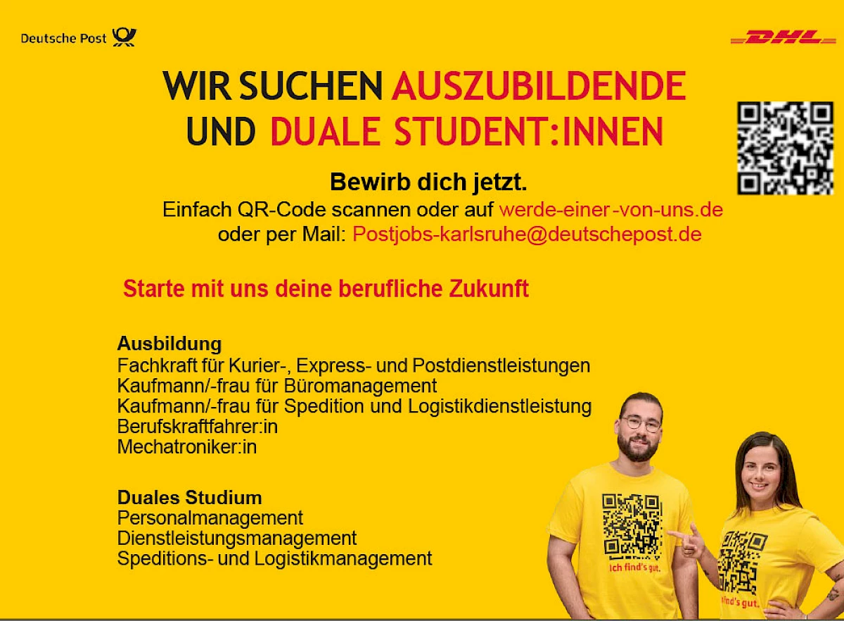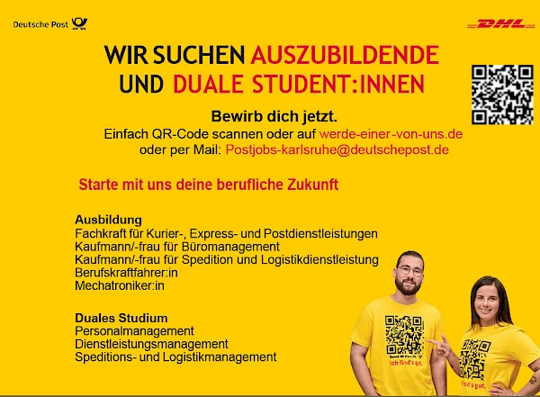 Die Niederlassung Karlsruhe bietet ausgezeichnete Einstiegs- und Entwicklungsmöglichkeiten – ob als Zusteller/in, Fachkraft in der Sortierung oder im Rahmen eines Dualen Studiums.